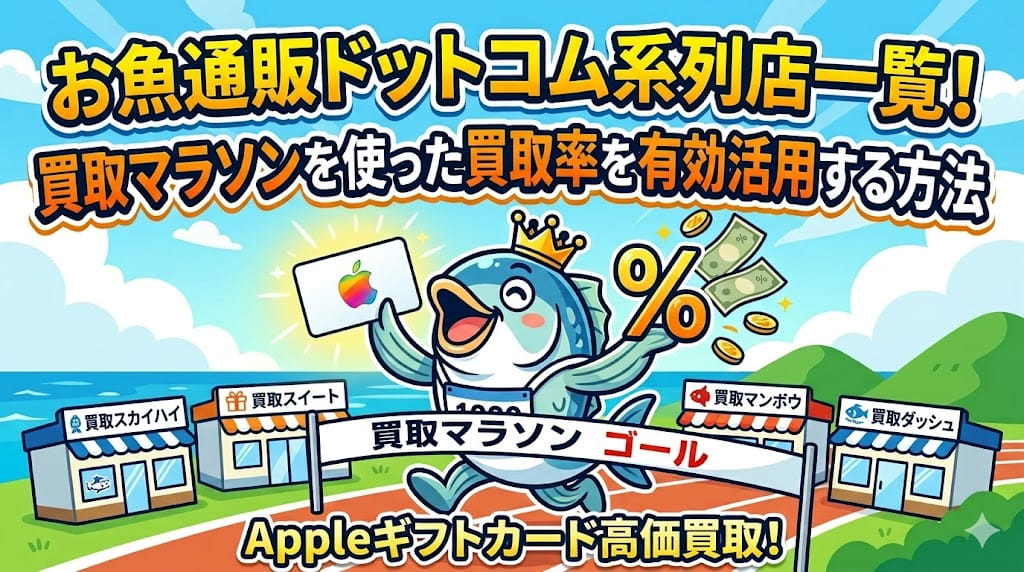 お魚通販ドットコムは、AppleギフトカードやAmazonギフト券などのデジタルギフト券を現金に換えるサービスを主軸に、25以上の買取サイトを運営するギフト券買取業者です。